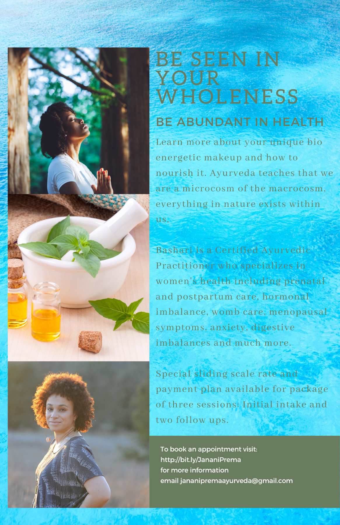 In support of this spirit I am currently offering an Ayurvedic women’s virtual health clinic. The clinic is sliding scale. My rates are $180- $525 for a package of three sessions. Payments are available. Venmo @Bashari-George or Cash app $basharilrg are the easiest forms of payment since these are zoom sessions.  Everyday 10% of the proceeds will go to a different nonprofit offering support for India’s Covid relief efforts. The first day’s donation will go to khalsa aid india. An organization that is providing free oxygen concentrators in Delhi as well as wood for cremation. For more info contact jananipremaayurveda@gmail.com.